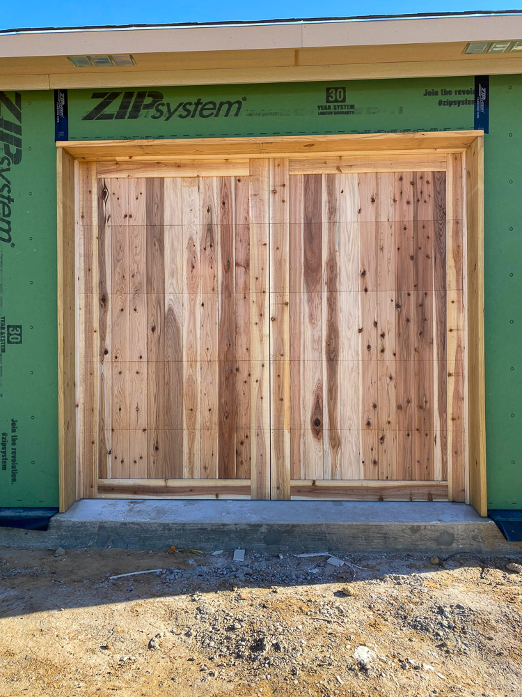 16×8, horizontal plank, smooth exterior, select tight knot cedar, built and installed by Doorvana Garage Doors